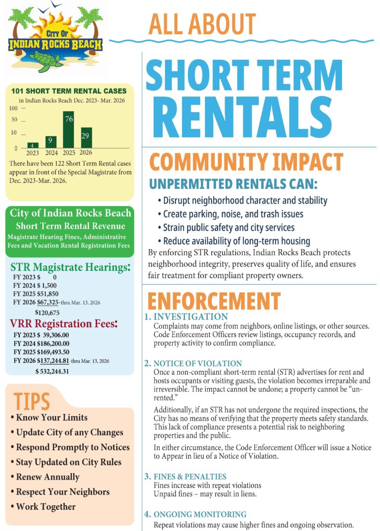 The following information regarding short-term rentals is intended to provide the essential information which property owners in the city of Indian Rocks Beach need to know regarding owning and managing short-term properties.